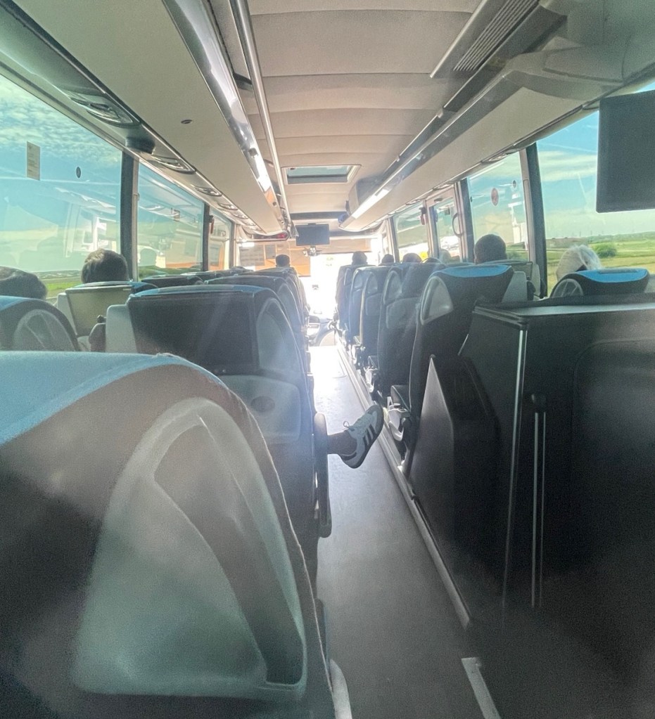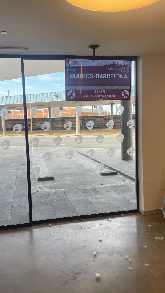De bus bracht ons naar Burgos, waar we overstapten op de bus naar Vitoria-Gasteiz. Bij die overstap kregen we de hulp van een lieve zeer behulpzame dame die samen met ons dezelfde bus nam. (We hadden ook maar enkele minuten de tijd door de vertraging van de eerste bus…